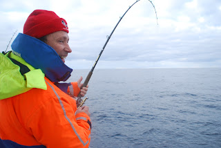 Vi tog ud på en kortere morgen tur og de 2 første stop gav en måler i hvert inden vi fandt nogle bidevillige fisk og så blev det sjovt.. Vi fik lokket dem meget godt op men de manglede størrelse om end der var en del målere iblandt. Ny plads og der var der meget bedre størrelse på fiskene. Jan fik fisk på 19,8kg, derefter en på 22kg og sluttede med top på 24,25kg. Dertil skal siges at han brokkede sig højlydt over sin 19,8kg da den kun var 100g over hans tidligere pr. og mon ikke den bliver dyr... Dagens store spørgsmål er hvad det koster at få vejet en fisk ned ved de andre gutter...