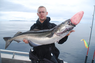 Mathias' første måler på 13,5 kg egenhændigt hevet op fra over 100m dybde på en lille "privattur" /stolt far :-)